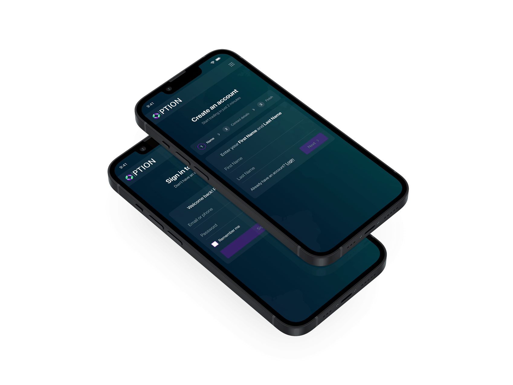 بازار را تحلیل کنید، داراییهایی (مثل جفت ارز یا سهام) انتخاب کنید و زمان انقضا برای گزینه مورد نظر را تنظیم کنید (مثلاً ۱ دقیقه، ۱ ساعت).